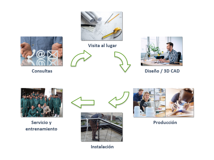 Le ofrecemos a nuestros clientes soluciones estandarizadas, al igual que nuevos desarrollos para situaciones concretas. Combinando diferentes variantes de construcción y funcionamiento, al igual que diversos materiales podemos cubrir escenarios diversos. Ofrecemos nuestras soluciones de manera estacionaria, parcialmente movible y totalmente móvil. Se ofrecen tanto de forma permanente como de forma temporaria en diversos lugares y sectores.
